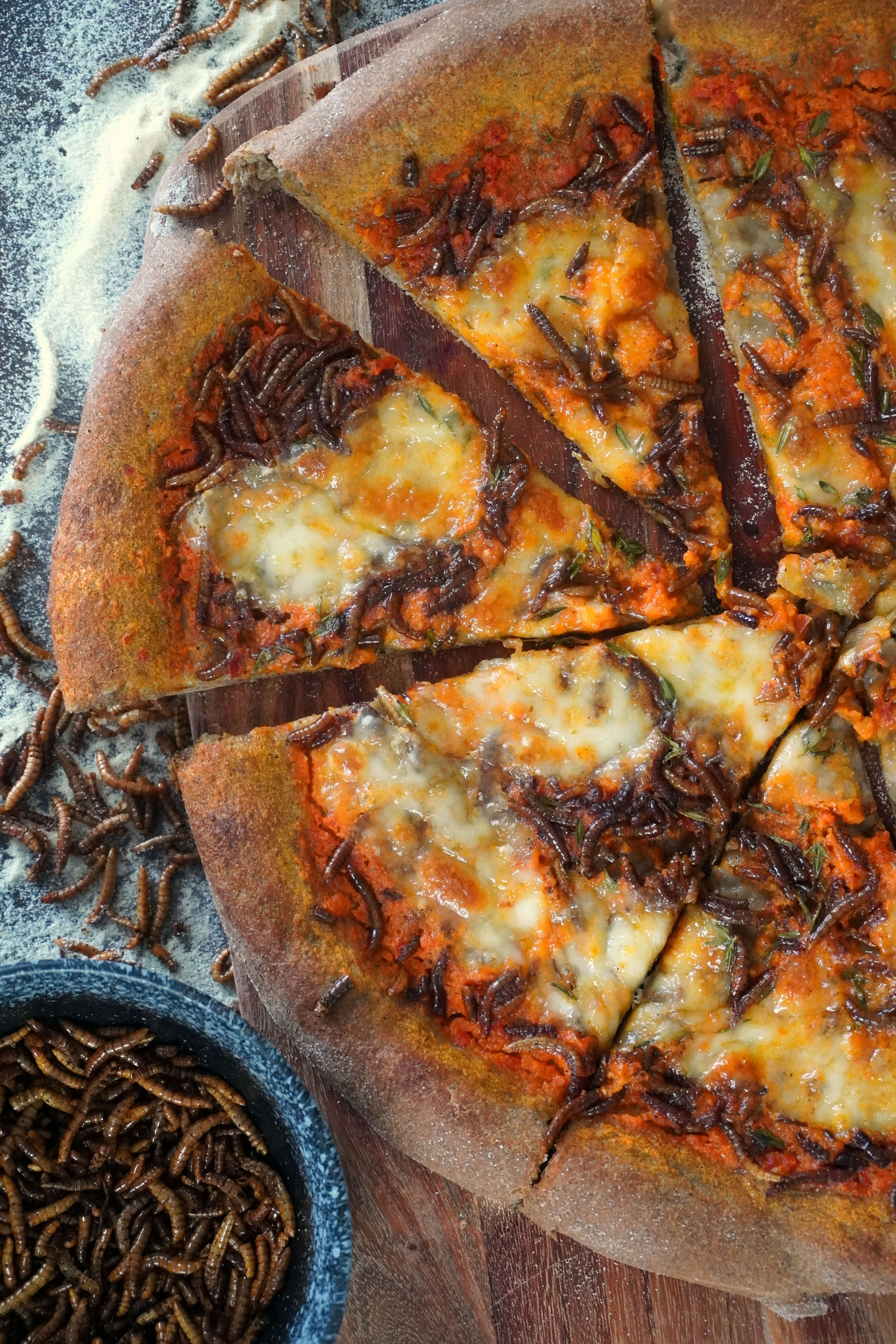 Ja du hast richtig gelesen: Pizza mit Insekten (um genauer zu sein sind es Mehlwürmer)